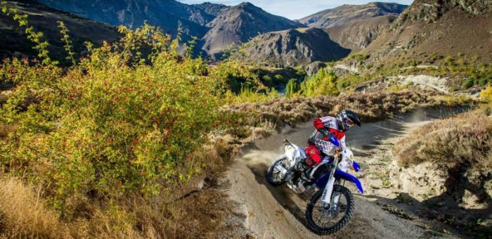 High Country Trail Ride We have exclusive access to over 11,000 stunning acres offering exhilarating riding with a great range of terrain and spectacular views. With tracks and trails including a large training area, hill climbs, creek crossings, dirt bike tracks running from the Kawarau River up into the mountains of the Kawarau Gorge. All tours are tailored to rider’s ability in small select groupings so whether you’re a novice or professional you get a challenging and enjoyable ride. No motorcycle license is required but you must be competent on a motorcycle to take part. DRZ 125-250 dirt bikes are used with upgrades available to the DRZ400 ($319) and WR450 ($399). When booking please specify in notes if an upgrade is preferred, previous experience on a similar size motorcycle is required. Essential Information Price: DRZ250 = $289 // DRZ400 = $319 // WR450 = $399 Duration: 3 hours round trip with a minimum of 1.5 hours ride time. Tour extension may be available upon request. Departures: Tours depart at 1pm from the Off Road shop, 61A Shotover Street, Queenstown. Check in 10 minutes before tour departure time. Bookings: A minimum of 2 people are required to confirm a High Country Trail Ride Tour. Suitability: No motorcycle licence required but you must be competent on a motorcycle. We guide in small groups, according to how well you ride so whether you’re a novice or a professional we offer a challenging and exciting ride. We provide: return transport to the Off Road shop, a range of 4 stroke dirt bikes 125cc, 230cc, 250cc (with upgrades to 400cc & 450cc) available. MX Helmet, boots, goggles, gloves, pants and riding top. Free action photos included. We recommend: wearing sensible clothing (long pants and socks). Bring water, snacks and Go-Pro. Check In: No accommodation pick up is offered with this service as we require all clients to check in at our shop (61A Shotover Street) at 12:50pm to complete the check in process and briefing even if they would like to self-drive to the site. Minimum Age: The minimum age is 16 years old with riding experience. Cancellation Policy: Bookings up to 10pax: 24 hours Groups of 10+ pax: 7 days No refunds will be issued within these periods. Off Road Adventures Ltd reserve the right to cancel or amend any trip due to operational issues including weather changes and terrain restrictions. Stringent safety procedures are observed at all times, however there remains an element of risk. Off Road Adventures cannot be held responsible for personal injury or for loss or damage of equipment. *********************************************************************************** Please ring to make all enquiries and bookings. If you can’t get through after hours between 6:30pm and 10pm you can use our RTBS booking system. This alternative option is only valid between 6:30pm and 10pm, please call only outside this period. No bookings can be taken between 10pm and 8am for the following day. - Please enter customers best contact telephone number for all bookings. - If you are using another booking system, please enter the voucher number in the notes. - Please make all customers aware of our Cancelation Policy: Bookings up to 10 pax: 24 hours & 10+ pax: 7 days – No refunds will be issued within these periods.