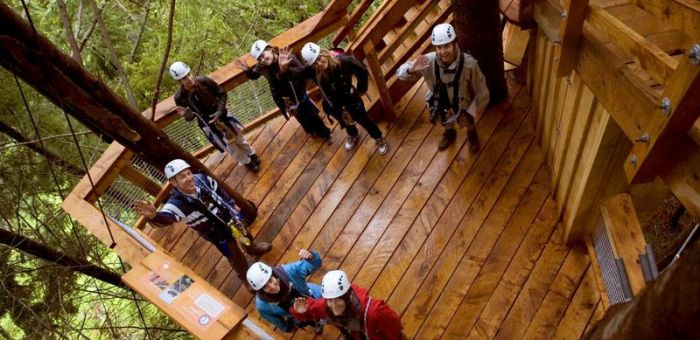 An alternate route is to hike the adventurous Tiki Trail from the bottom of the Gondola to the top (please allow 1 hour). You will approach the Ziptrek Treehouse at the top of the trail on the left-hand side.